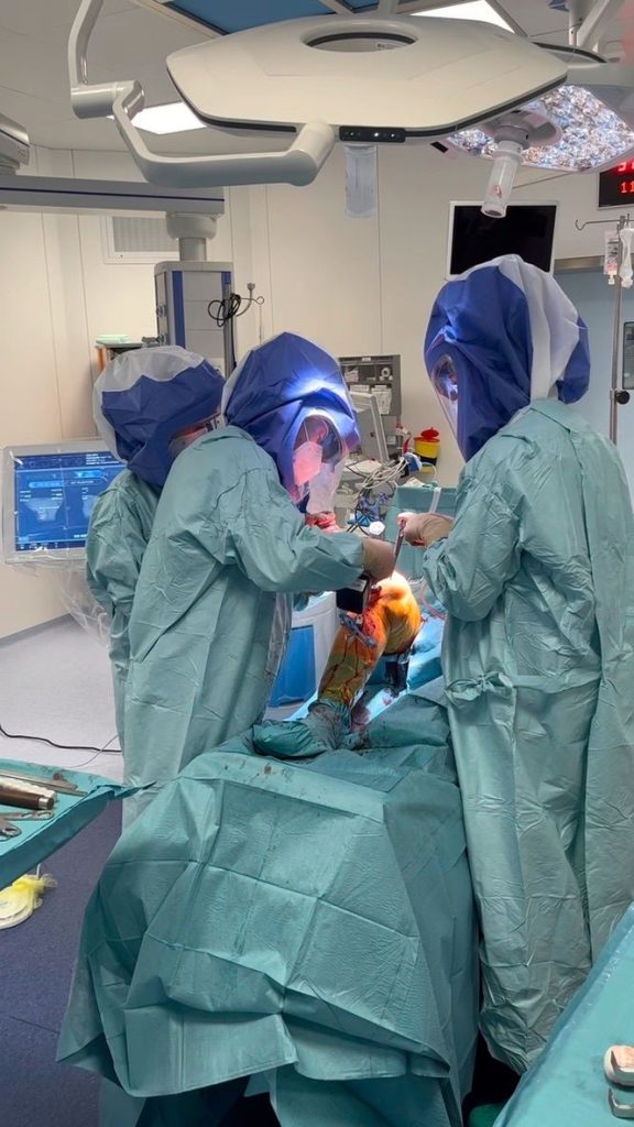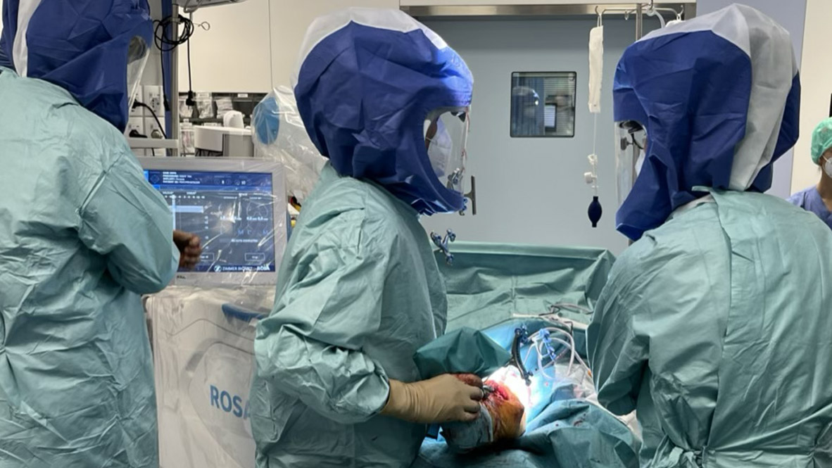 - Esecuzione con ausilio robotico: durante l’intervento, il sistema robotico assiste il chirurgo garantendo un posizionamento ottimale con una precisione millimetrica, riducendo al minimo le alterazioni dei tessuti sani.